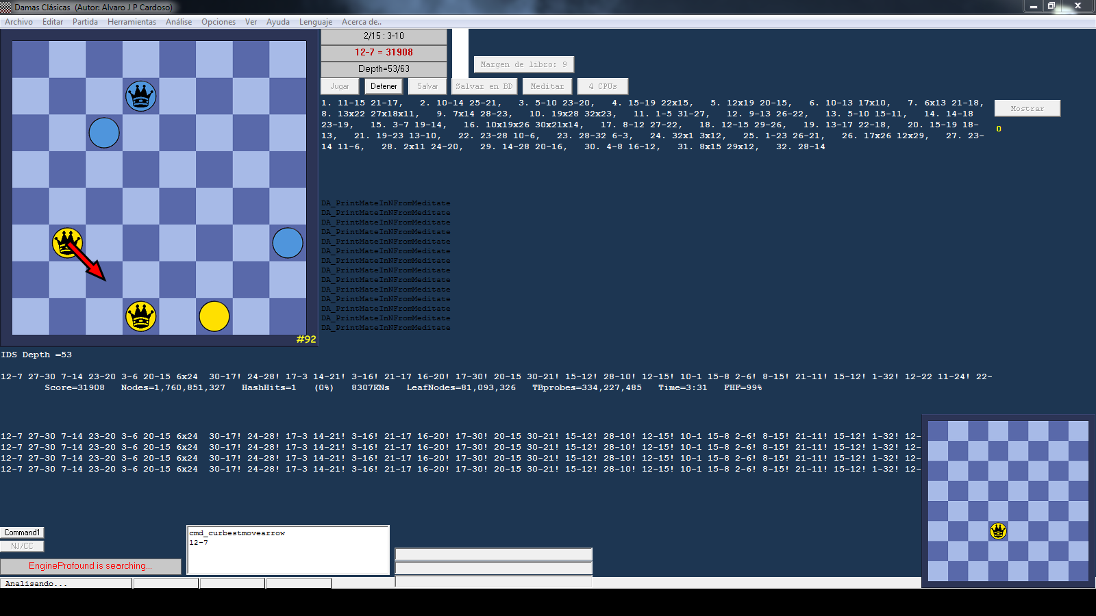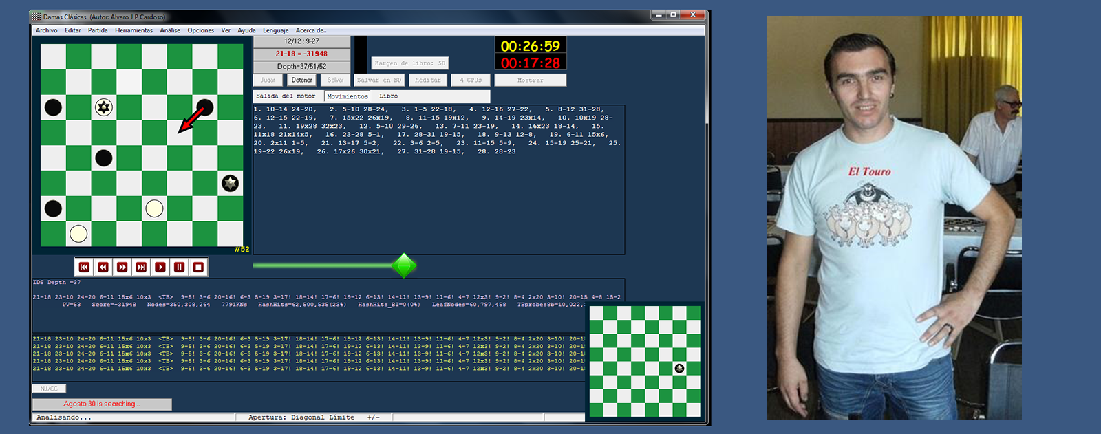 Como toro llevado al matadero, así cayó derrotado Nuno Vieira frente al poderoso programa portugués Profound. ¡Posiblemente ningún jugador hubiera podido imaginar este fatídico resultado! Ver aquí: http://damasclasicas.blogspot.com/p/duelo-3.html