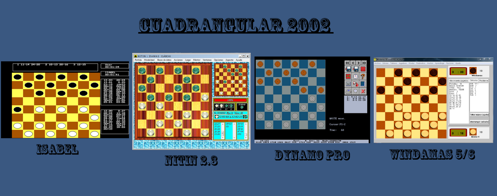 Pasaron 10 años desde que se realizó este celebre torneo a 4 bandas. El resonante triunfo del programa Isabel sin perder partida no dejó dudas que aún seguía siendo un estupendo rival. Ver aquí: http://damasclasicas.blogspot.com/p/cm-i.html